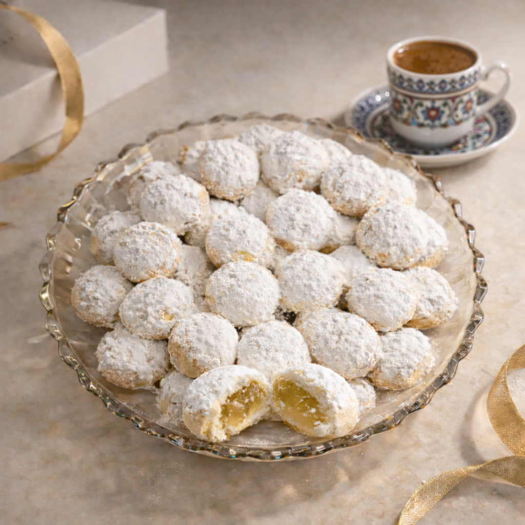 Kahk filled with soft Malban, delicately sweet and lightly translucent, enhanced with our chef’s secret ingredient that adds a uniquely rich and aromatic flavor