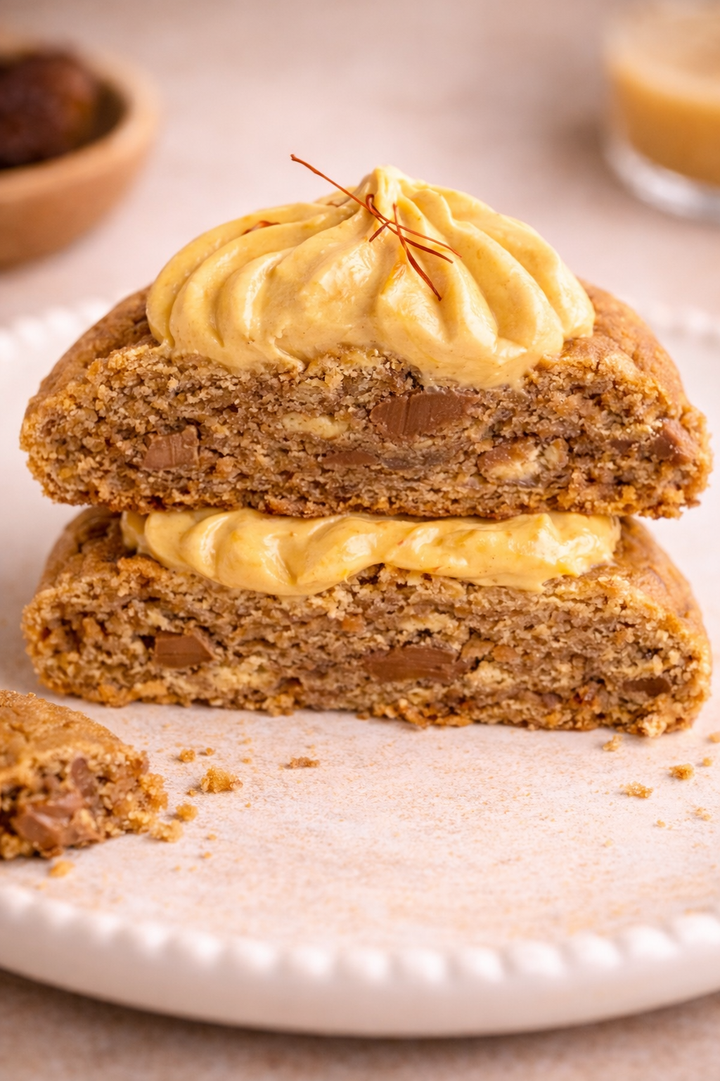 A warm karak-spiced cookie infused with saffron cream — aromatic, creamy, and inspired by Middle Eastern comfort